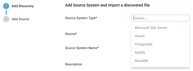 The Add Source System and import a discovered file side panel window opens.