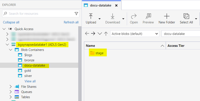 - Clear the Target Data Lake folder (docu-datalake in our example).