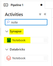 - Search for Synapse Notebook in the Activities:
