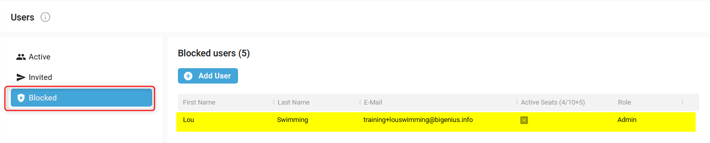 - The User is now displayed in the Blocked list: