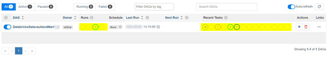- You can follow the data load by clicking on the DAG, then on the current execution (green bar), and finally on the Graph tab: