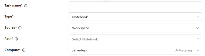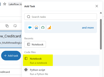 - Add the first task by clicking on Notebook:
