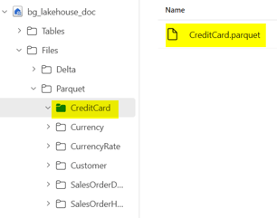 - Example: bg_lakehouse_doc.Lakehouse/Files/Parquet/CreditCard