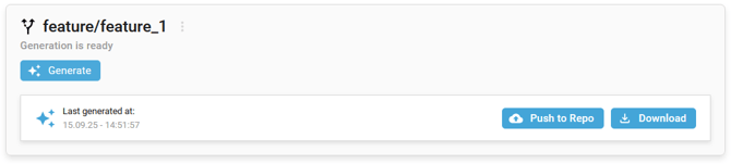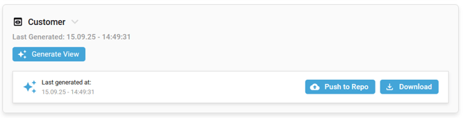 If you have already generated artifacts for your project's current Branch or a dedicated Data Modeling View, the last generation is always displayed, and you can download the previous Generated Artifacts.
