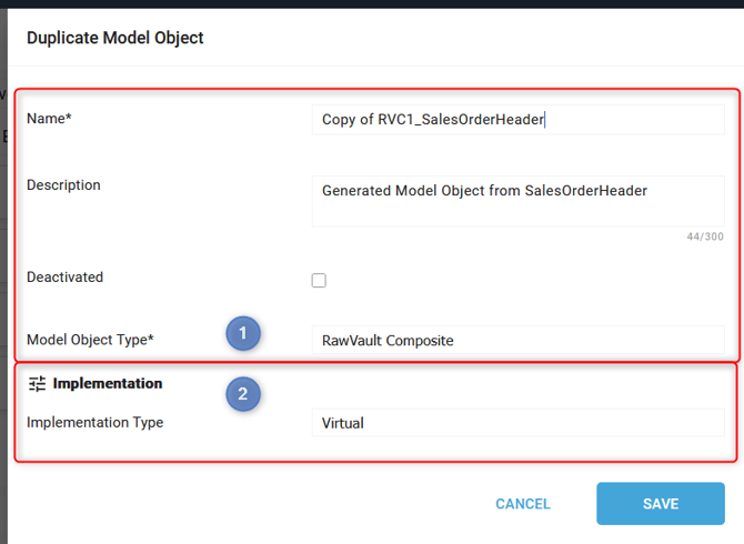 - Model Object Type: By changing the Model Object Type, the Model Object will be duplicated to this new Model Object Type