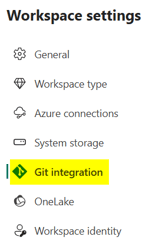 Now, click on the Workspace settings menu to configure the git integration: