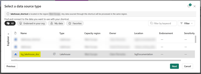Your source data are now shortcutted in your Workspace: