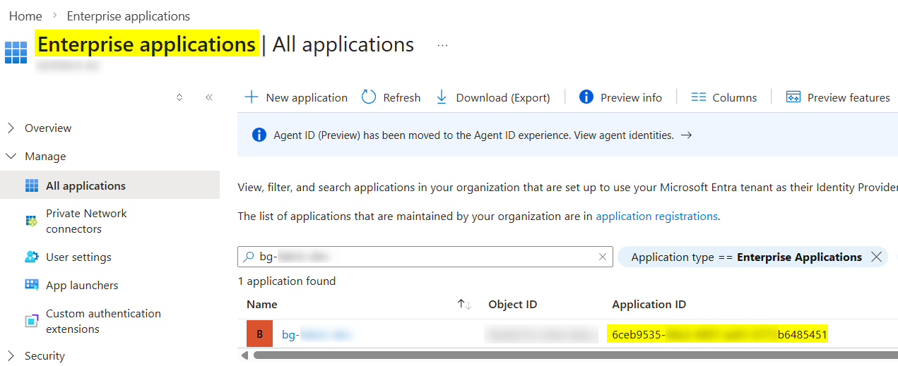 - client-id: You can find it in your Azure Enterprise application. It is the application ID: