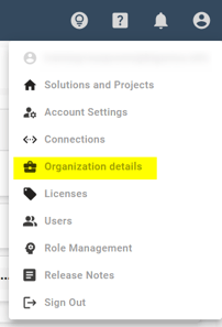 Selecting the Organization details option will lead you to the Organization details page, where you will find:
