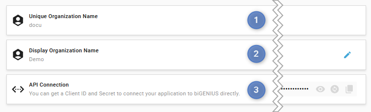 - Unique Organization Name: The unique name of your Organization in the biGENIUS application