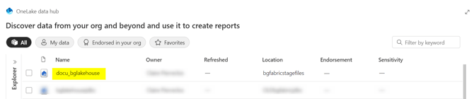 - Selecting the Lake House previously created (docu_bglakehouse in our example):