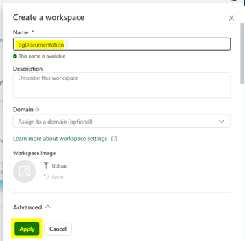In this example, we will call the Lakehouse bg_lakehouse_doc.
