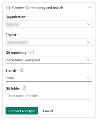 Connect to your Azure DevOps git repository, then click on the Connect and sync button: