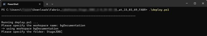 - Folder name: name of the folder in the Fabric workspace where to upload the artifacts