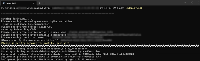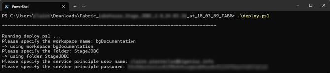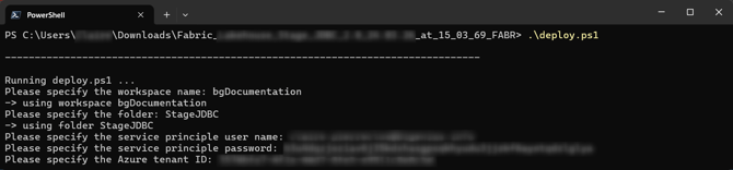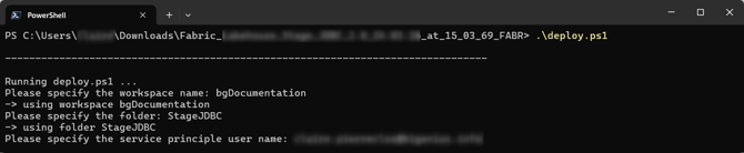 - Workspace name: name of the Fabric workspace where to upload the artifacts