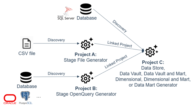 - Create a second Project with the Microsoft SQL Server Data Store, Data Vault, Data Vault and Mart, Dimensional, Dimensional and Mart, or Data Mart generator.