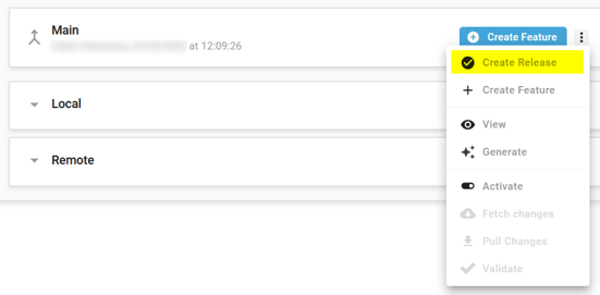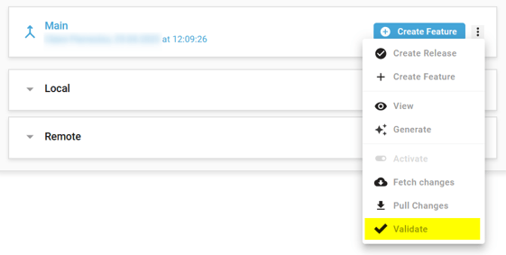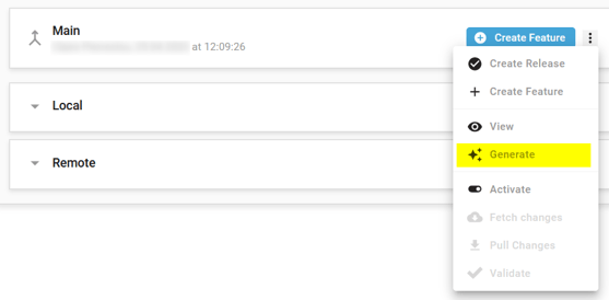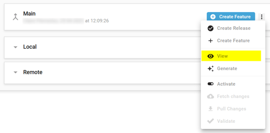 - Start a Pull Request for a local Feature Branch: it opens the Metadata repository URL set for the Project (See Create a Project):