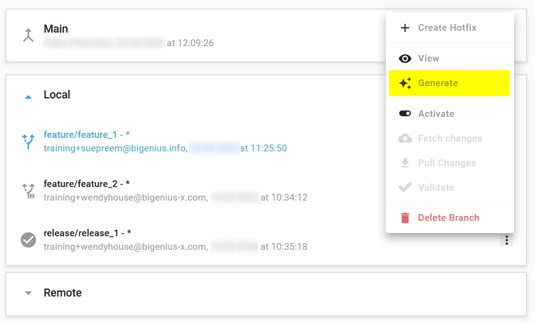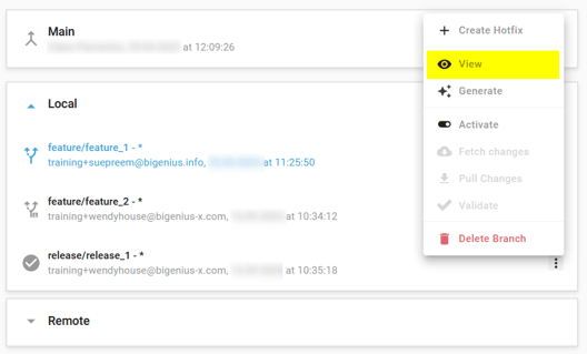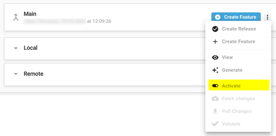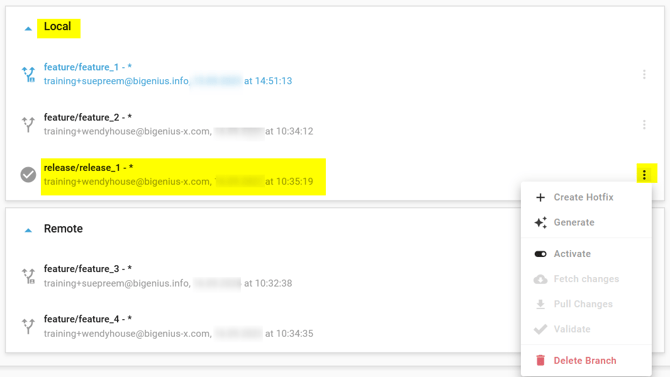 - Fetch the changes from the Remote Branch to the local Feature or Release Branch: The branch should be activated first