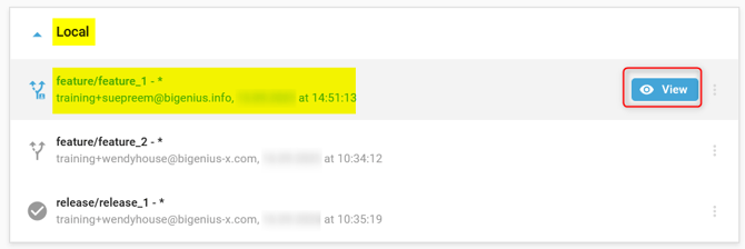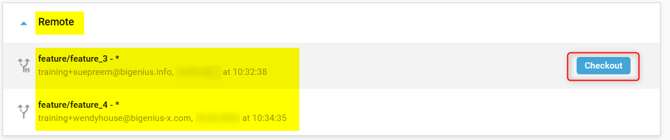 - All the remote Branches: from him and from all the other users: he can check them out: