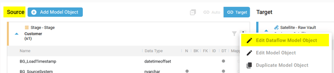- Edit the Source Dataflow Model Object