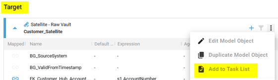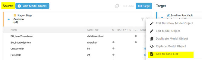 - Add the Source or Target Model Object to the Task List