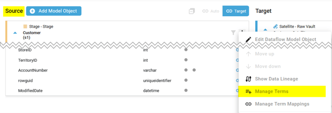 - Manage the Terms of the Source or Target Model Object