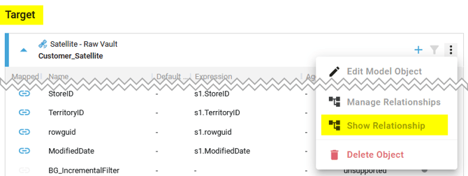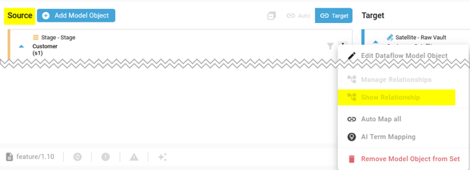 - Show the Relationship diagram for the Source or Target Model Object