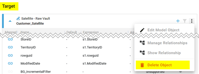 - Delete the Target Model Object