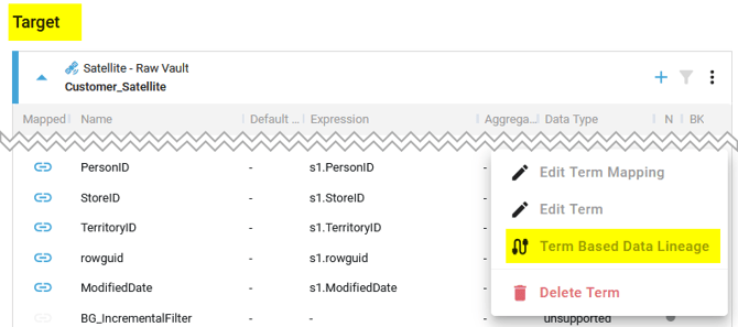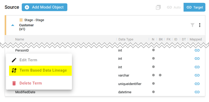 - Show the Source or Target Term-Based Data Lineage
