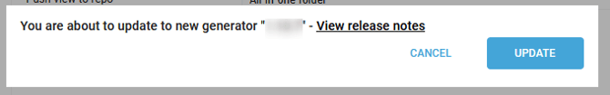 If you are not using the latest version of the Generator Configuration, a button UPDATE to: version will prompt you to upgrade your Generator to the next available version.
