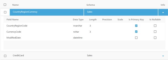 {"Id":"295b8615-dc0b-4794-a509-da079c6e40f8","Name":"CRM_Example","Server":"localhost,1460","Database":"CRM_Example","AuthenticationType":"SQL Server Authentication","User":"sa","Schema":"dbo"}]The passwords and other sensitive information are not stored and are only used to discover the source system data.